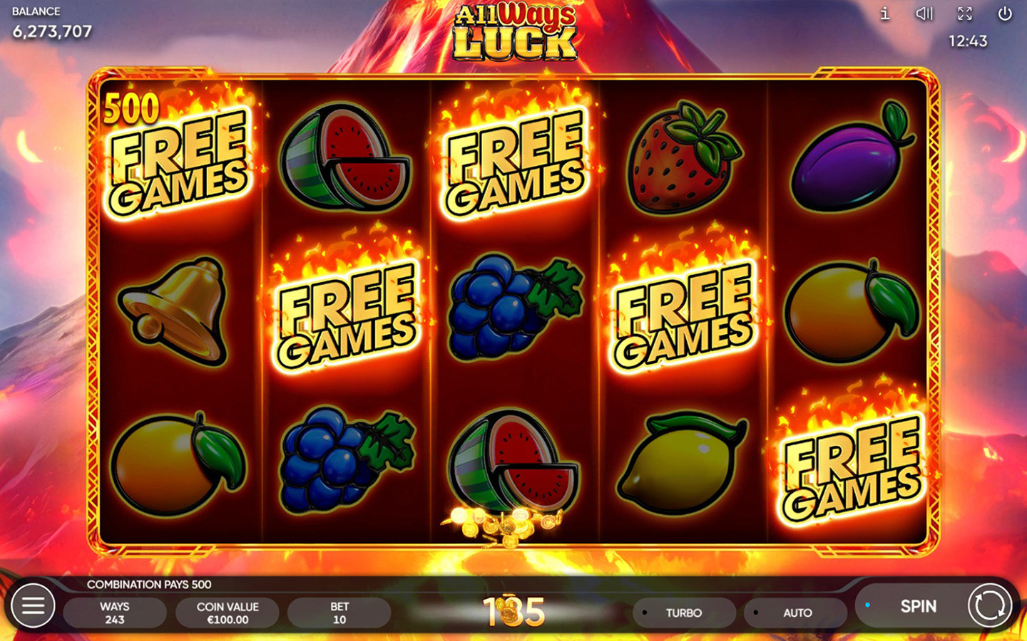 Enfréntate a la ira de nuestro feroz volcán, el Furia Eterna, que retumba bajo la superficie de la Tierra. Prepárate para presenciar el fuego eterno de la naturaleza, que arde siempre con pasión, en nuestra tragamonedas más nueva: ¡All Ways Luck!