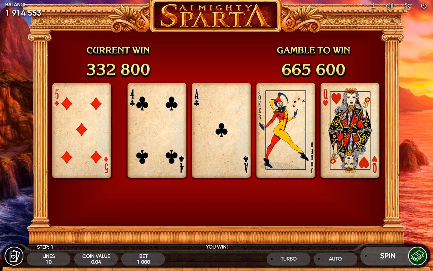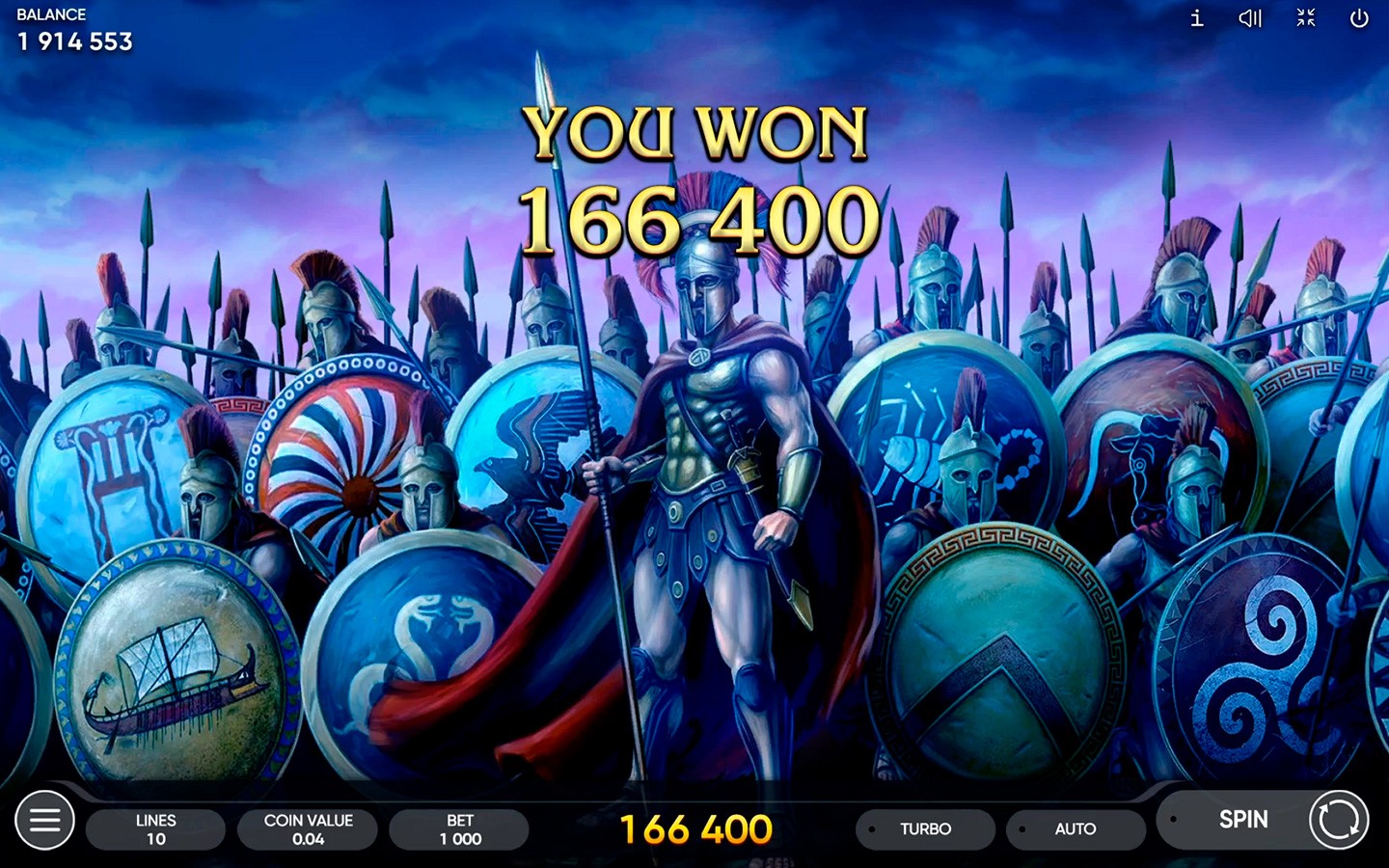 En Almighty Sparta, un juego de tragamonedas de 10 líneas de pago, 5 carretes y 3 filas, te llevaremos directamente a la Batalla de las Termópilas y te revelaremos la historia de estos intrépidos guerreros de las ciudades-estado griegas liderados por el rey Leónidas I de Esparta. Los guerreros griegos eran ampliamente superados en número por los guerreros del imperio Persa, liderados por el rey Jerjes, pero estaban listos para luchar hasta su último aliento y derrotar a los persas. Por desgracia, Efialtes, un habitante local guiado por la codicia y la sed de dinero, condenó al ejército a la perdición. A principios de ese año, el oráculo de Delfos realizó predicciones de muerte y destrucción, pero ya no había vuelta atrás.