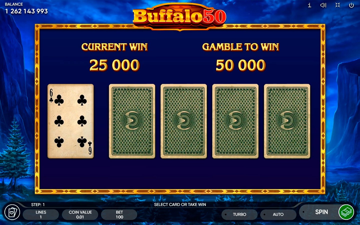 Como siempre, tendrás la oportunidad de duplicar tu ganancia hasta 10 veces, porque Buffalo 50 también incluye un juego de riesgo clásico.