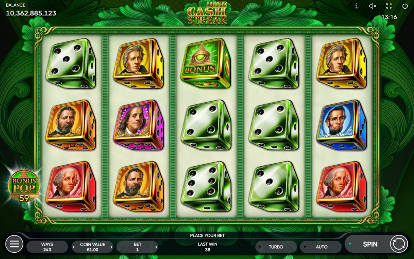 Además, los jugadores pueden duplicar sus ganancias hasta diez veces en el juego de riesgo clásico. También está disponible la bonificación Bonus Pop.