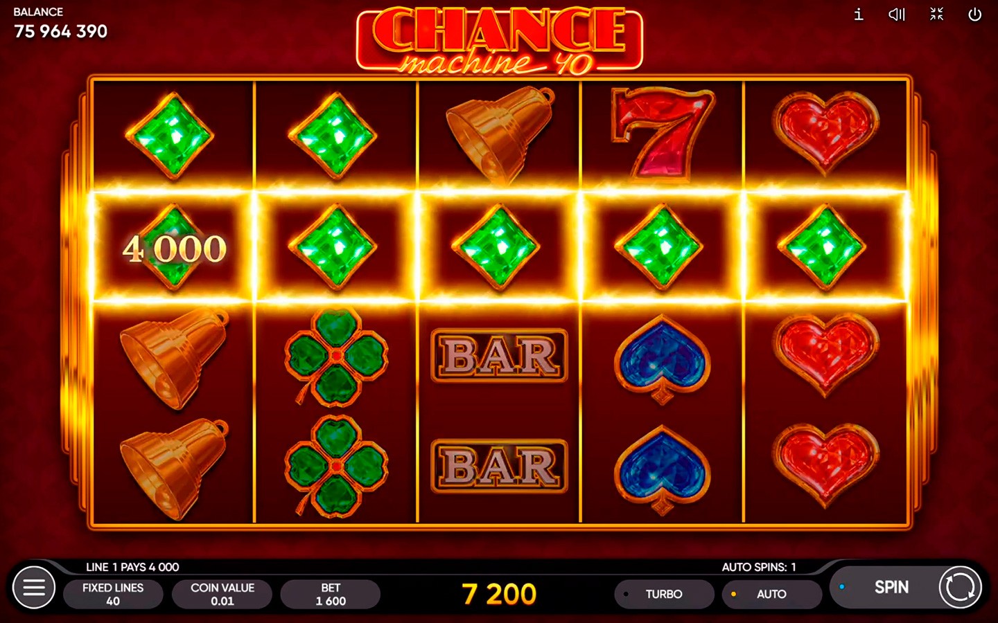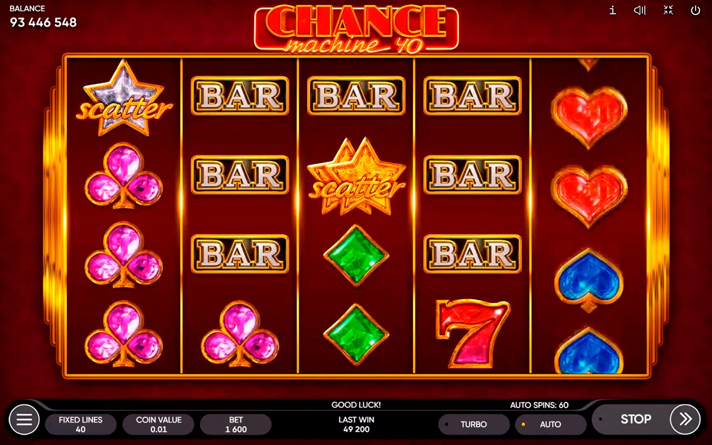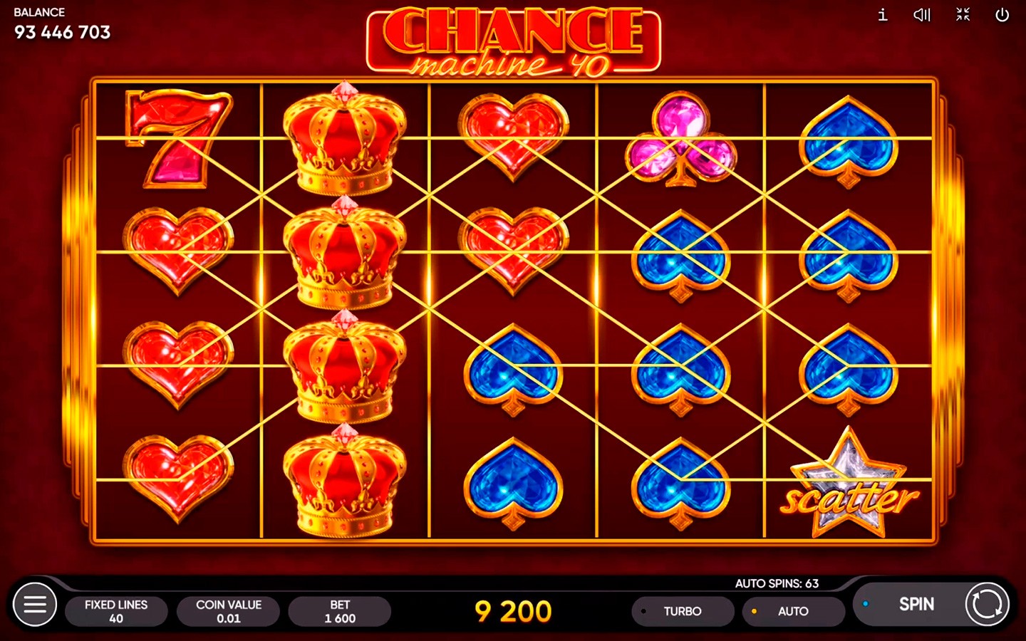 La tragamonedas Chance Machine 40 es la tercera joya deslumbrante de la serie Chance Machine de Endorphina. ¡Y nuestra corona real está ansiosa por lucir su joya en forma de estrella que brilla con una elegancia excepcional!