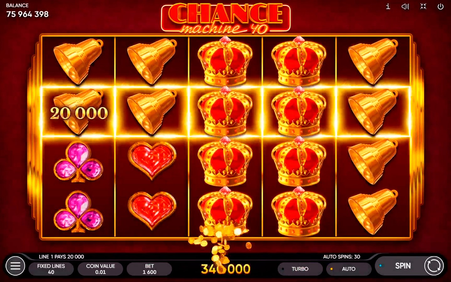 ¿Crees que tienes lo necesario para impresionar a nuestra corona única? ¡Muestra tus mejores giros dentro de Chance Machine 40 para descubrirlo por tu cuenta!