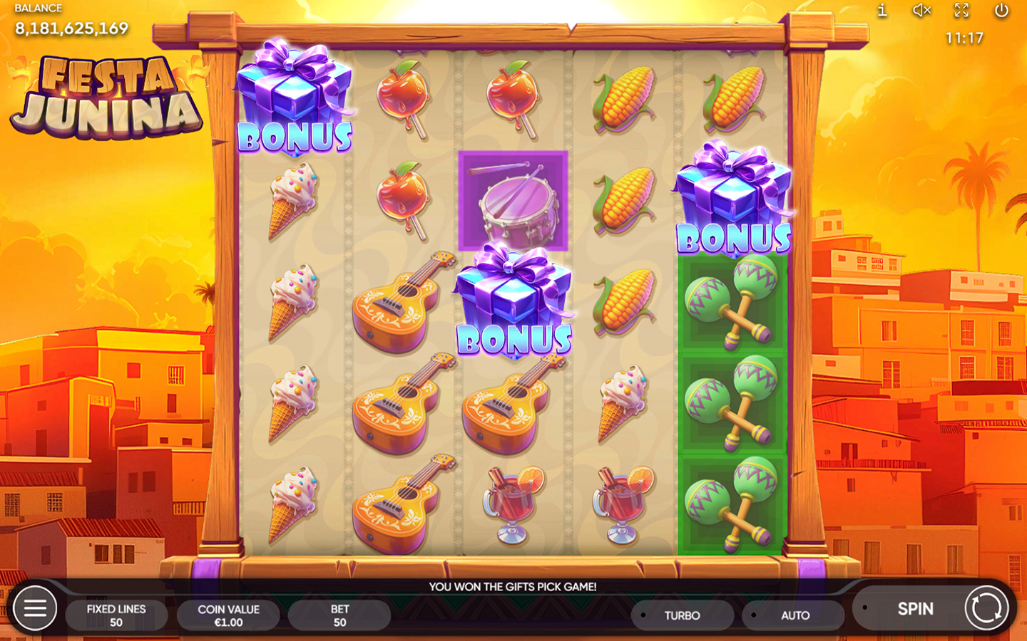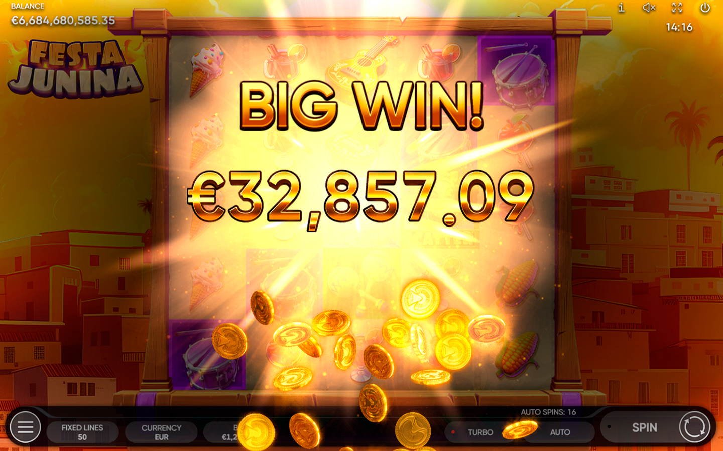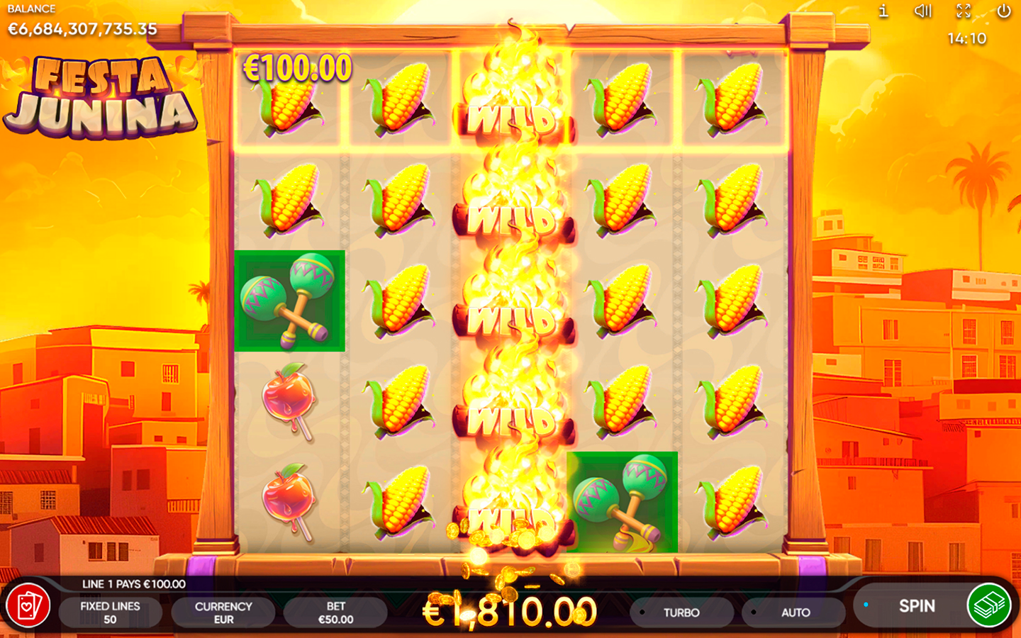 Inspirada en una de las fiestas más grandes y esperadas de Brasil, Festa Junina cuenta con 5 carretes, 5 filas y 50 líneas de pago fijas. Nuestra tragamonedas encarna idealmente la atmósfera de la festividad con sus coloridas decoraciones, su comida, su música tradicional y los bailes, y te llevará al centro de todas las festividades. Los jugadores incluso encontrarán la hoguera ritual, el símbolo Wild que se expande de manera vertical, que sustituye a todos los símbolos, excepto al Scatter y al Bonus, y aparece únicamente en los carretes 2, 3 y 4.