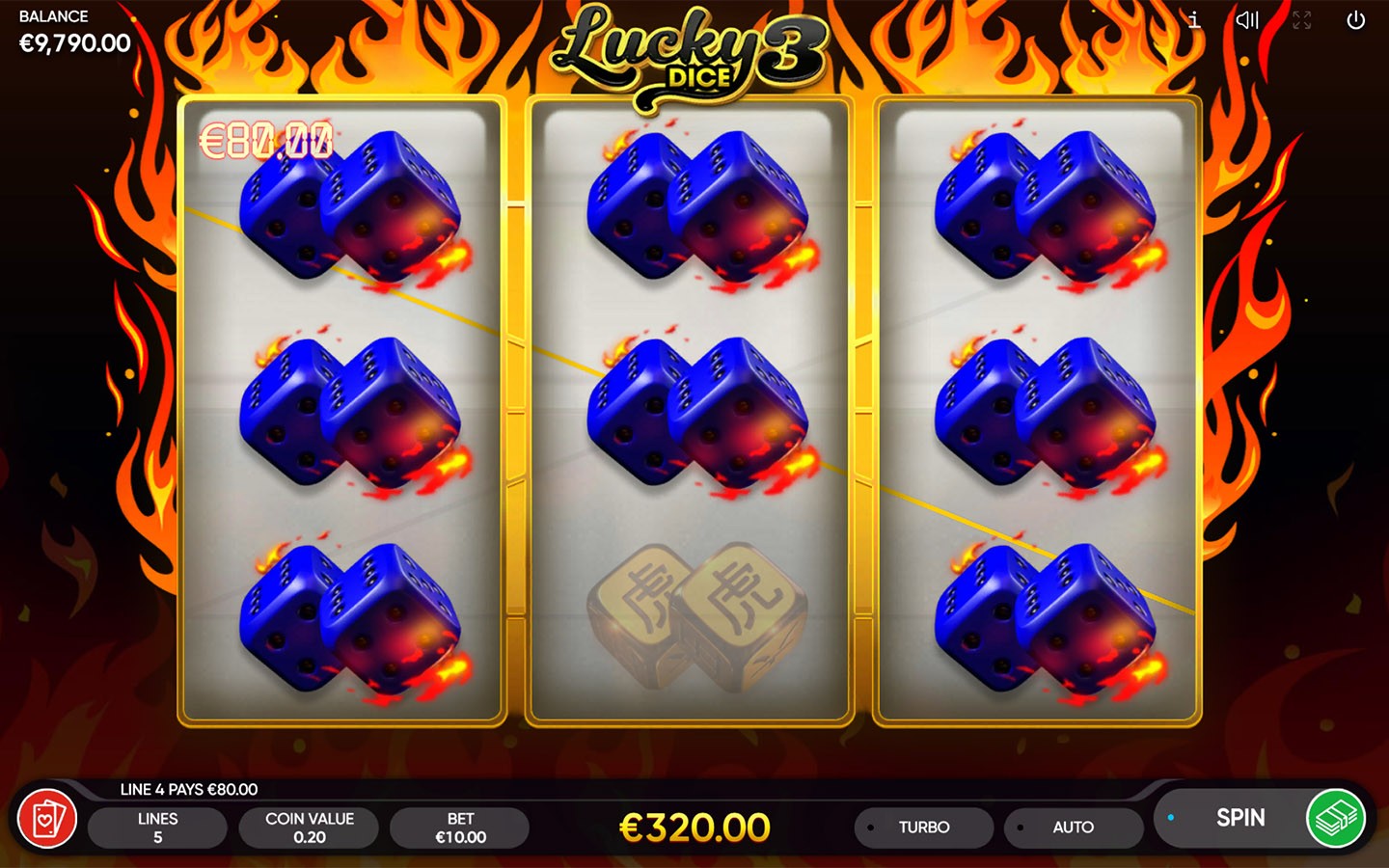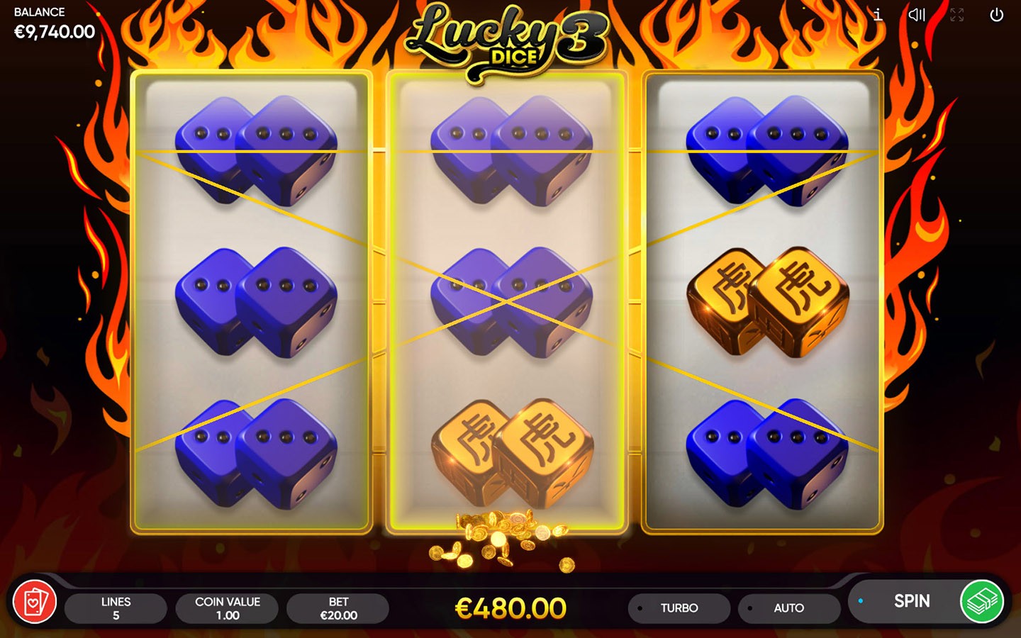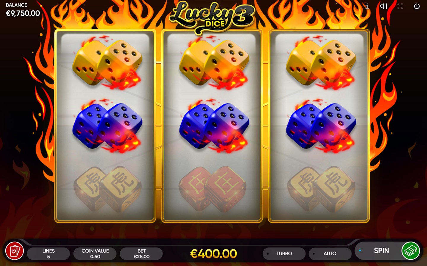 Lucky Dice 3 es la tercera y última tragamonedas de nuestra serie Lucky Dice. A esta altura, ya estarás familiarizado con nuestra combinación intensa entre la sensación clásica de la vieja escuela con nuestros dados llenos de fortuna. Juega tu mejor mano en este juego nuevo que no puedes dejar pasar y veamos qué te depara el futuro. ¿Conseguirás tu ganancia más grande o tendrás mejor suerte la próxima? Inténtalo y descubre qué símbolo chino es el adecuado para ti. Puedes encontrarte con personajes afortunados, como el dragón feroz, el tigre audaz y el banquero experimentado, todos listos para darte suerte cuando la necesites en el juego de tragamonedas Lucky Dice 3.