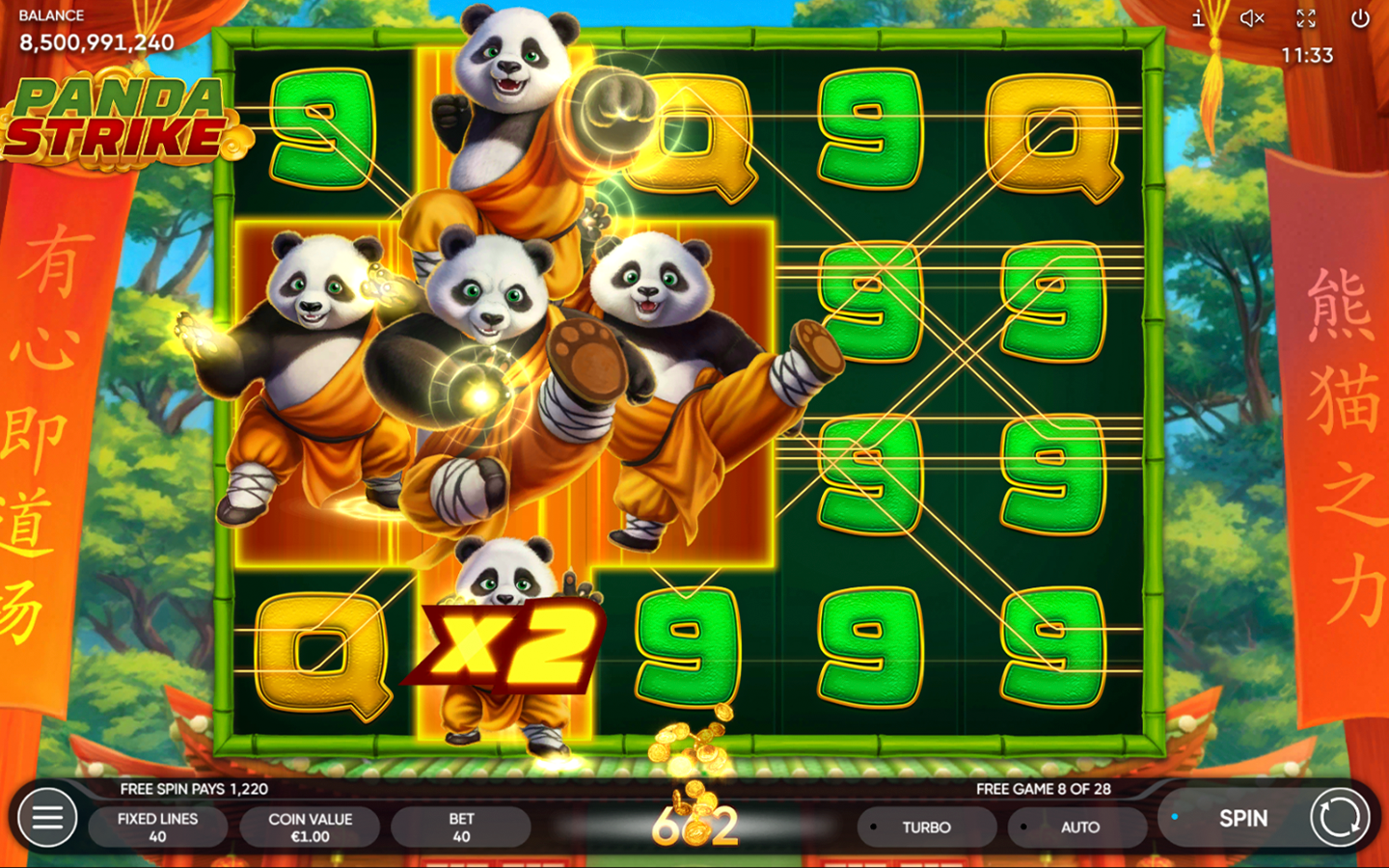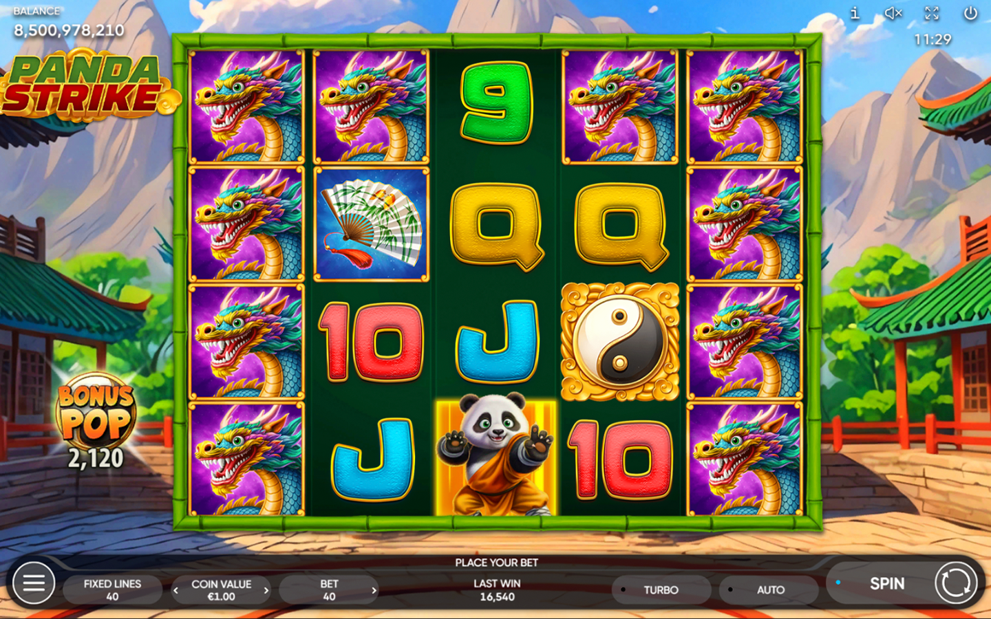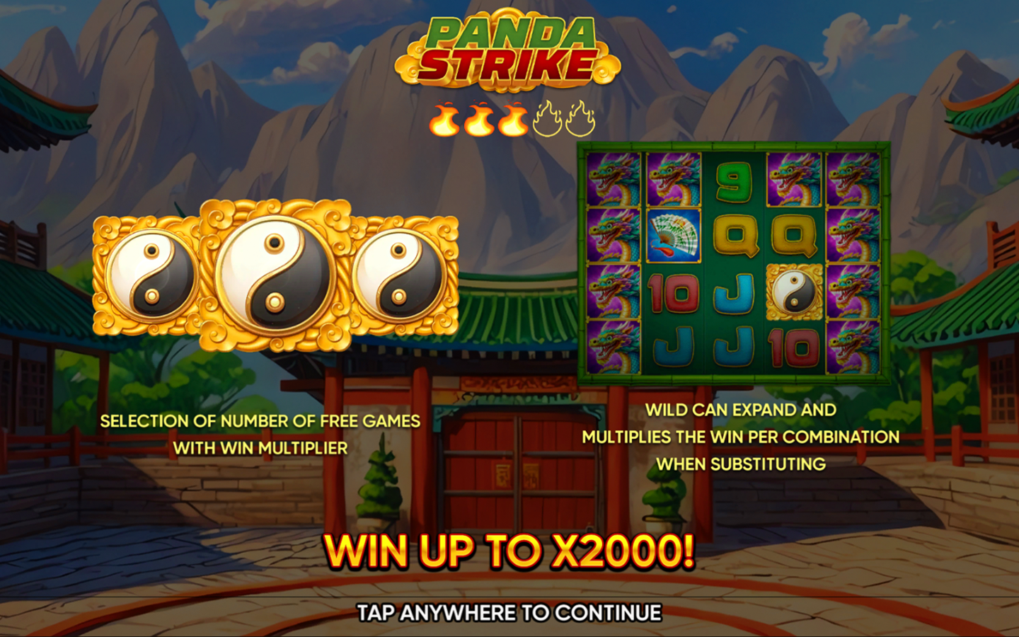 Viaja a nuestra ciudad distante ubicada en lo profundo de China mientras emprendes una misión por conquistar la concentración y la autodisciplina. Panda Strike es nuestra tragamonedas de temática oriental más nueva que cuenta con 5 carretes, 4 filas y 40 líneas de pago fijas, y te presenta el verdadero poder de las artes marciales chinas.