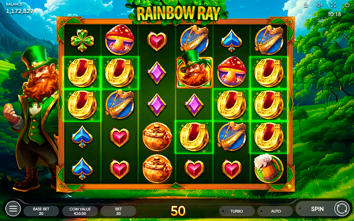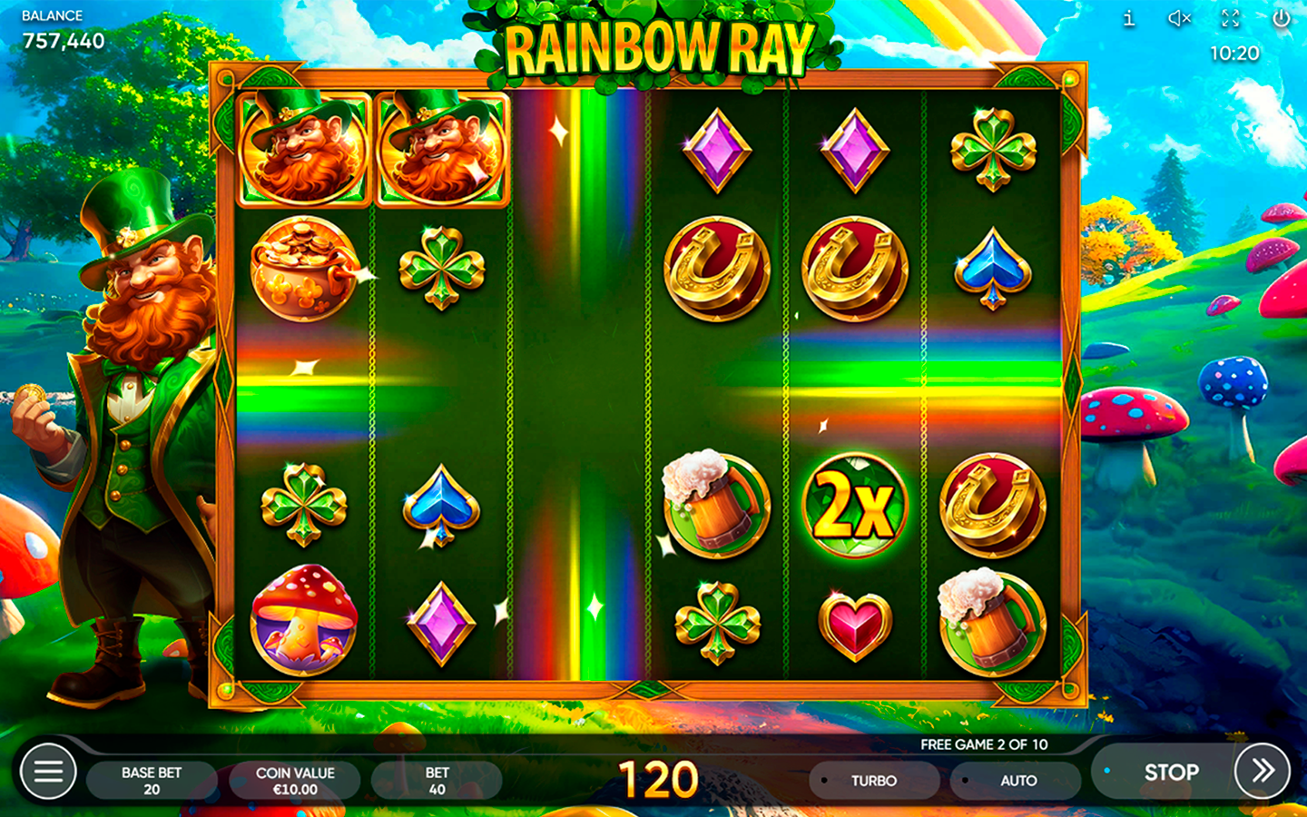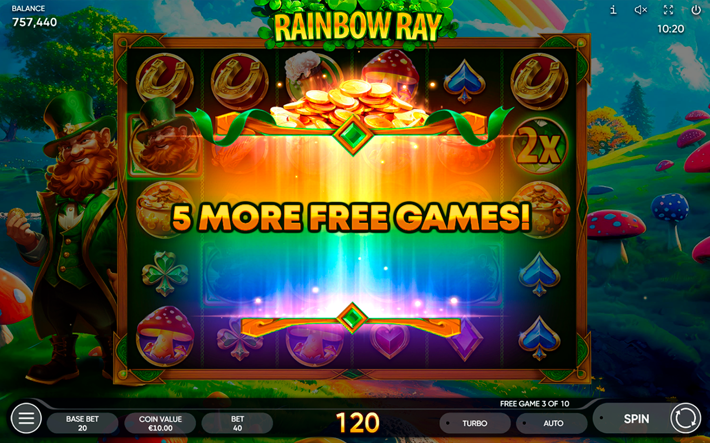 Sigue el arco iris y descubre el pueblo escondido de los duendes y todos sus secretos mágicos. Explora montañas y prados majestuosos hasta llegar al otro lado del arcoíris. ¡Recoge los pagos tipo Scatter a lo largo del camino!