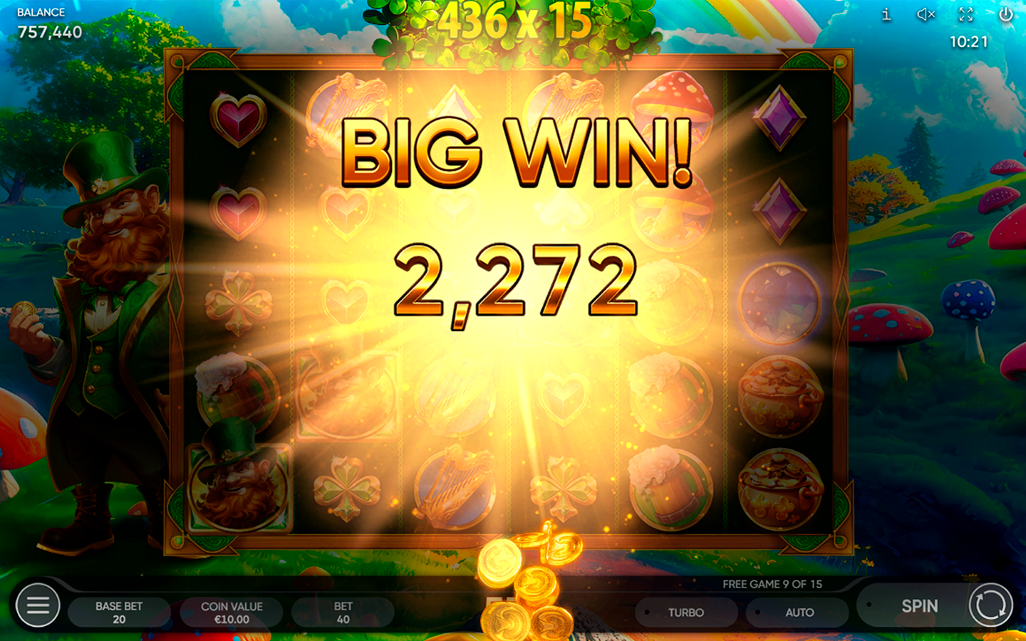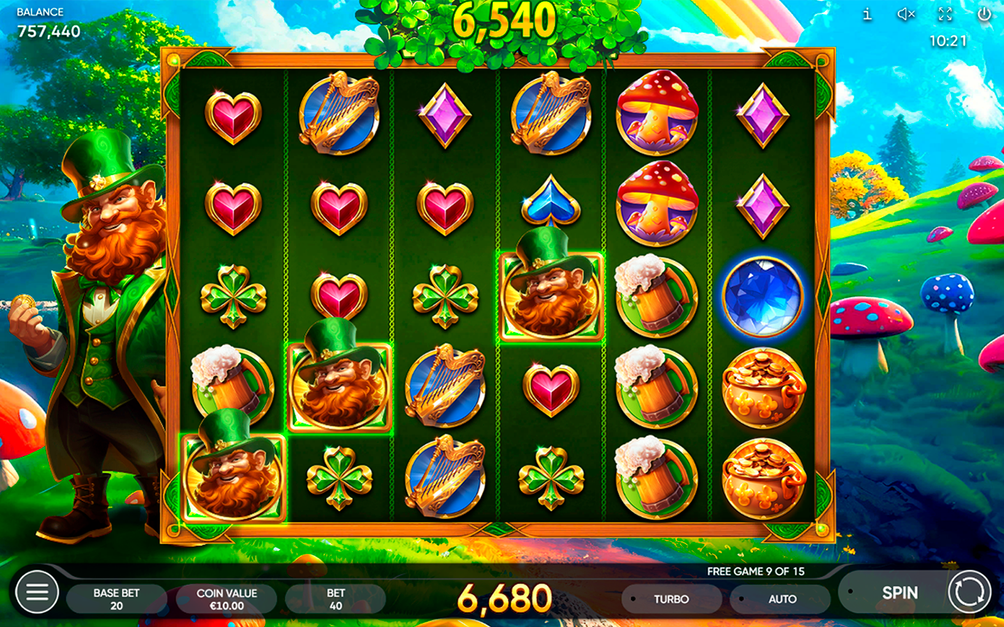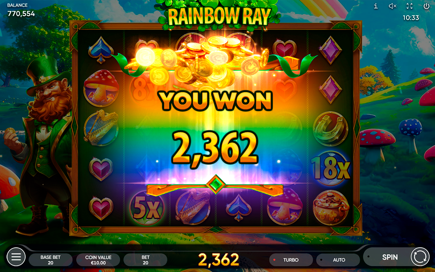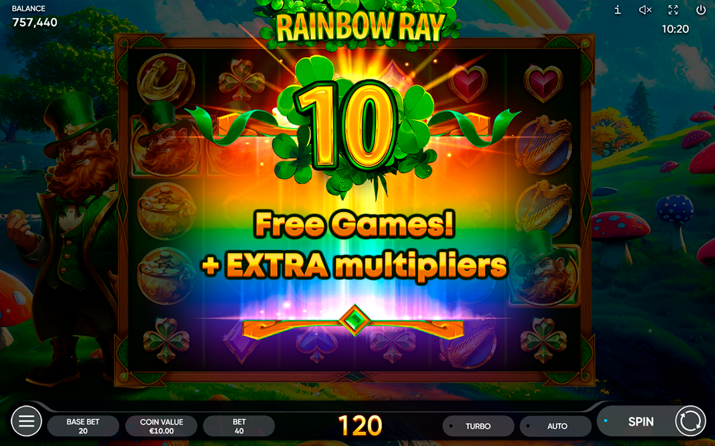 Sigue el arco iris y descubre el pueblo escondido de los duendes y todos sus secretos mágicos. Explora montañas y prados majestuosos hasta llegar al otro lado del arcoíris. ¡Recoge los pagos tipo Scatter a lo largo del camino!