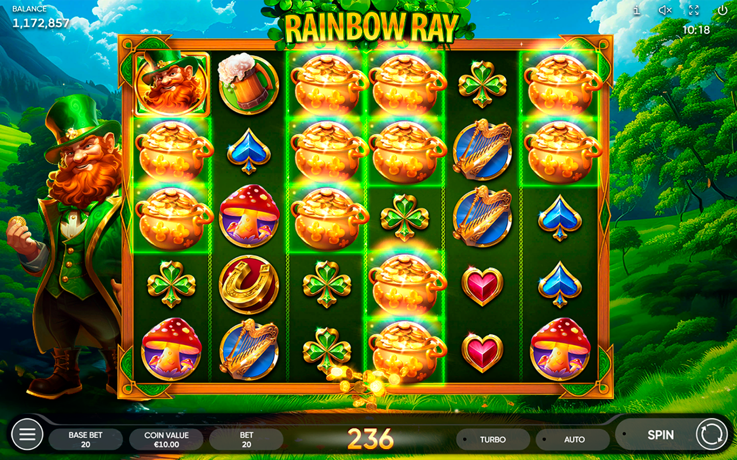 Convence a los duendes de que compartan el secreto de Rainbow Ray y observa cómo tu olla de oro comienza a llenarse de riquezas. Deje que la luz del arcoíris te ilumine el camino y revele tesoros invaluables que de otro modo serían invisibles a simple vista.