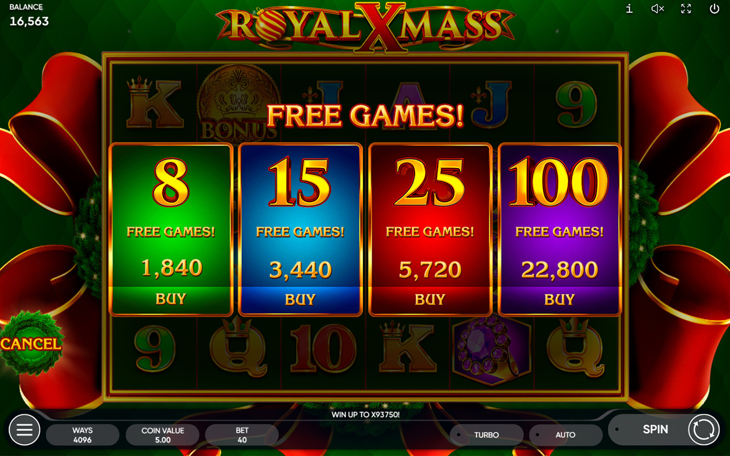 ¡Esta tragamonedas navideña tiene 6 carretes, 4 filas y 4096 modos de pago fijos con la oportunidad de multiplicar las ganancias hasta 93750 veces!