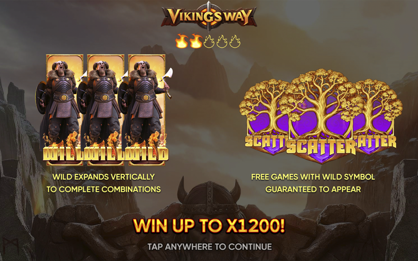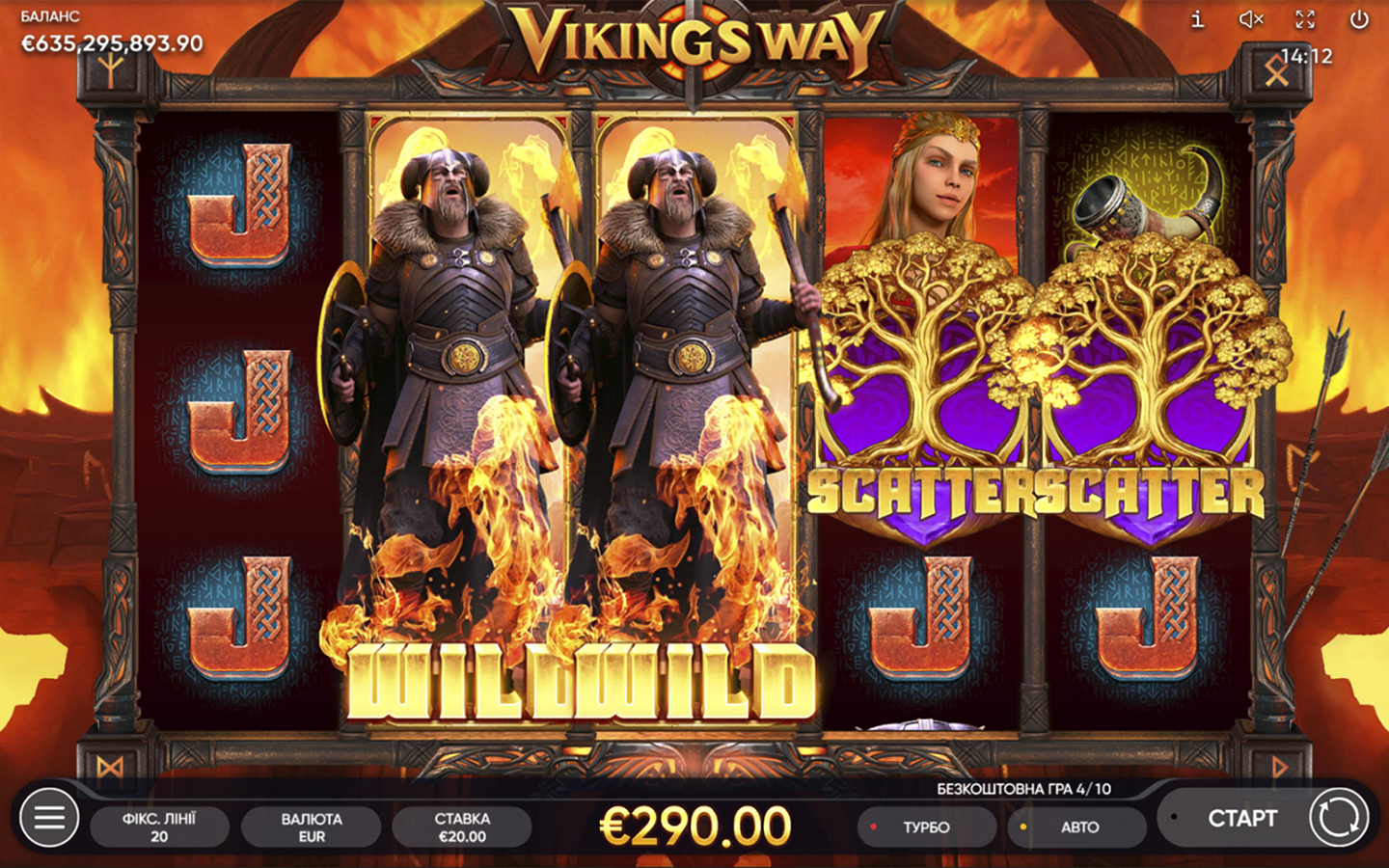 Ahora, estás a punto de embarcarte en una aventura épica con nuestra tragamonedas de 5 carretes y 3 filas con 20 líneas de pago fijas. El símbolo Wild del vikingo aparece en los carretes 2, 3 y 4 y se expande verticalmente. El Wild sustituye a todos los símbolos, excepto al Scatter. La aparición de tres o más símbolos Scatter activa hasta 20 Juegos Gratis y se garantiza la aparición de un símbolo Wild.