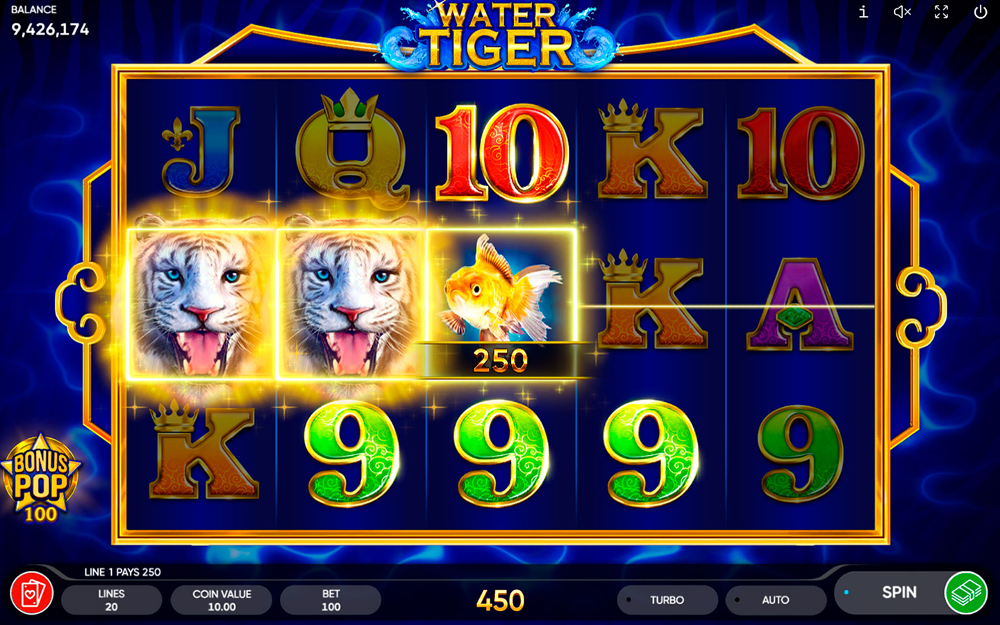 ¡Puedes duplicar tus ganancias hasta 10 veces durante el juego de riesgo clásico! En este juego también está disponible la bonificación Bonus Pop.