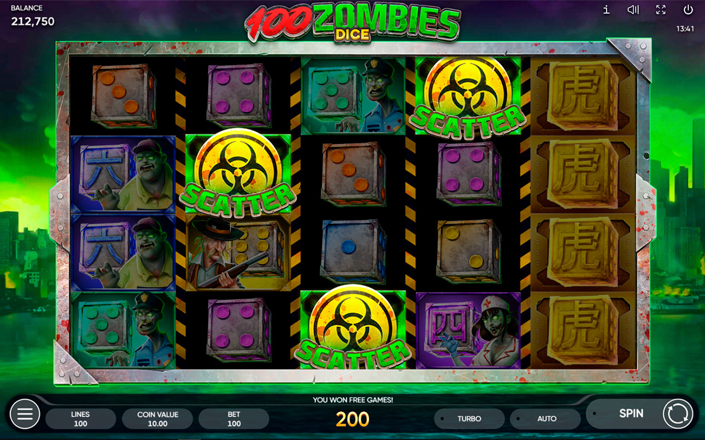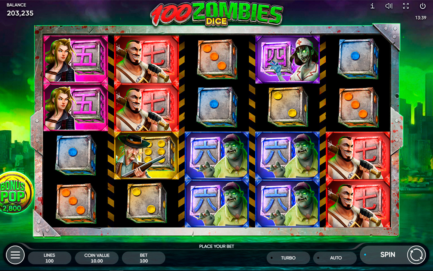 Welcome to the beginning of the end – the zombie apocalypse in our newest dice-themed game. A world where local scientists wanted to cure people of their illnesses but instead, accidentally turned them into cunning and vicious zombies. This thrilling dice slot transports the players into a world of complete shock, adrenaline, and uncertainty as they must cling to their shotguns to defend themselves and their friends. These creatures of the living dead do not rest. They will not stop. And they are coming in this dicey slot.