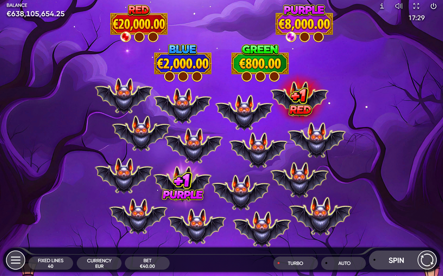 - Spooky Pick’em Bonus – Pick from 20 enchanted objects to uncover gemstones — Emeralds, Sapphires, Amethysts, or Rubies — each holding dazzling rewards.