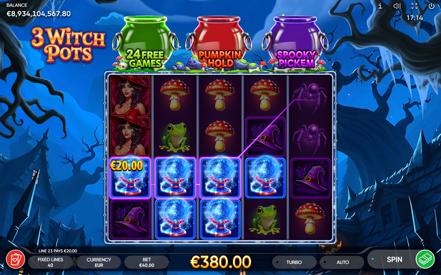 Black Cat Wilds leap across the reels, Token Symbols shimmer and vanish, and every spin crackles with Halloween energy across 5 reels, 4 rows, and 40 fixed paylines. With a potential max multiplier of x1300, the witch’s magic is potent and unpredictable — just like Halloween itself.