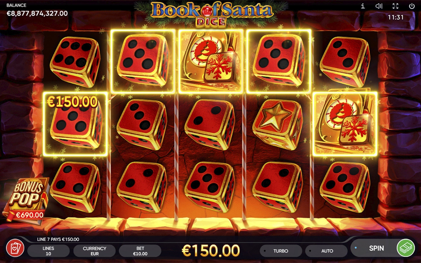 Welcome back to our Christmas-decorated living room, where all the holiday magic comes to life! Take a seat in front of the cozy fireplace and stay warm as you watch dice as red as Rudolf’s nose fall on the reels.