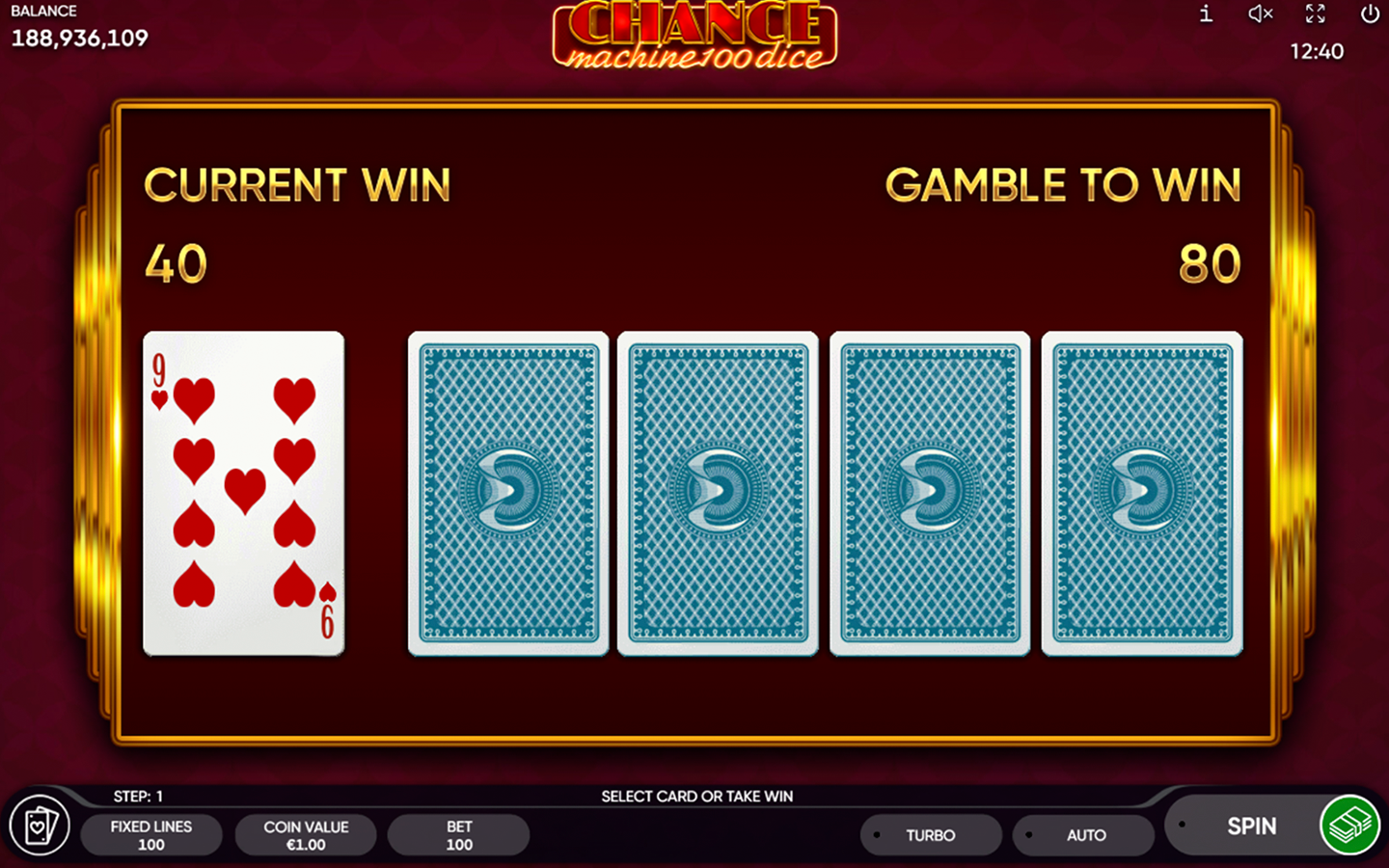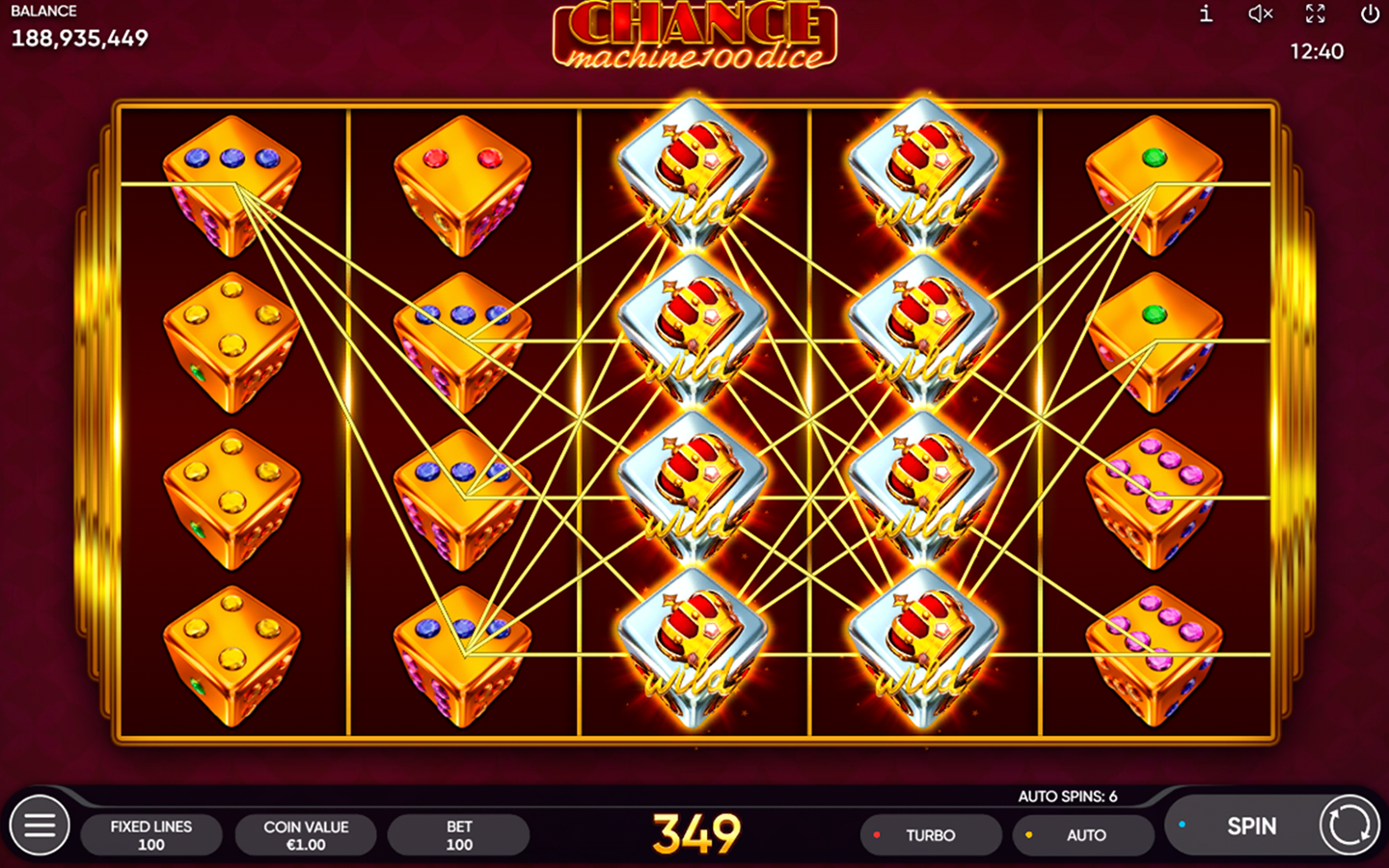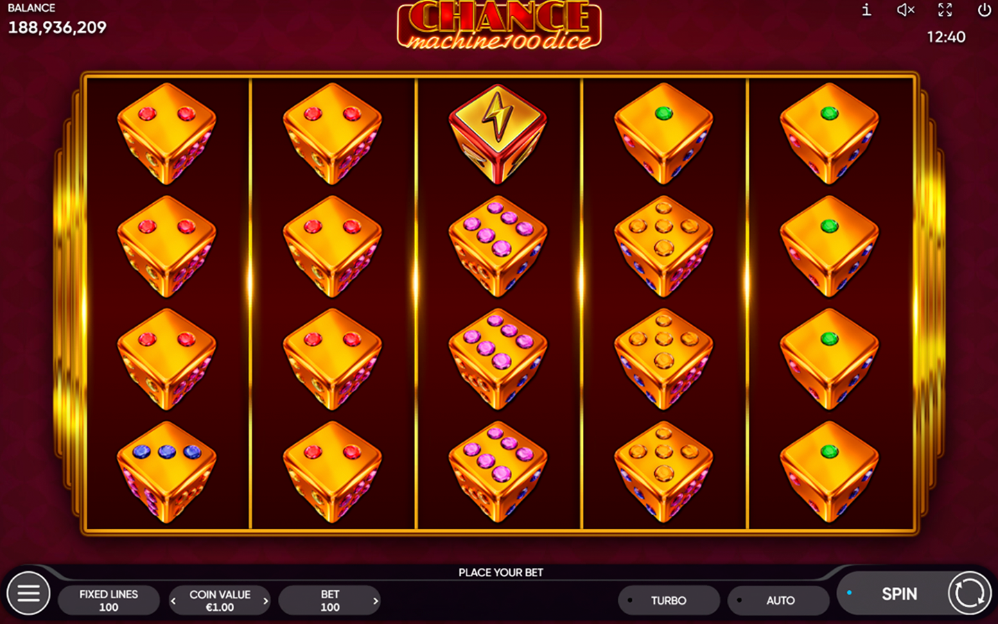 In Chance Machine 100 Dice, players will encounter sparkling features carefully chosen to keep any player engaged. The crown die acts as a Wild symbol, appearing on reels 2, 3, and 4, expanding vertically and substituting for all symbols. Furthermore, this elite dice slot also features two different Scatter symbols that count on any position on the reel - a shining gold star and a prestigious theatre mask!
