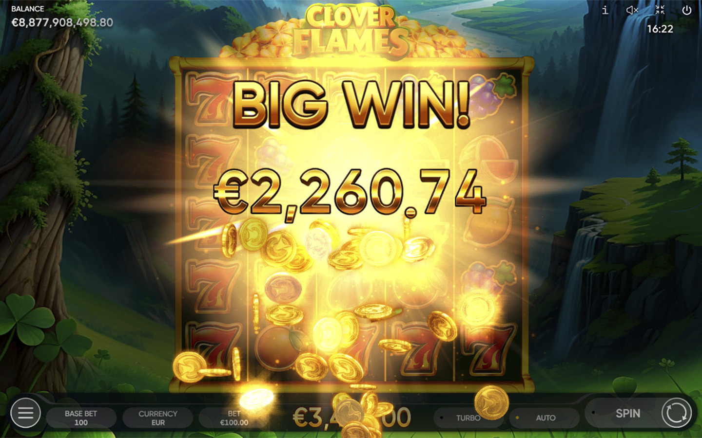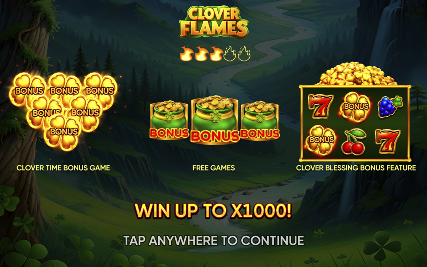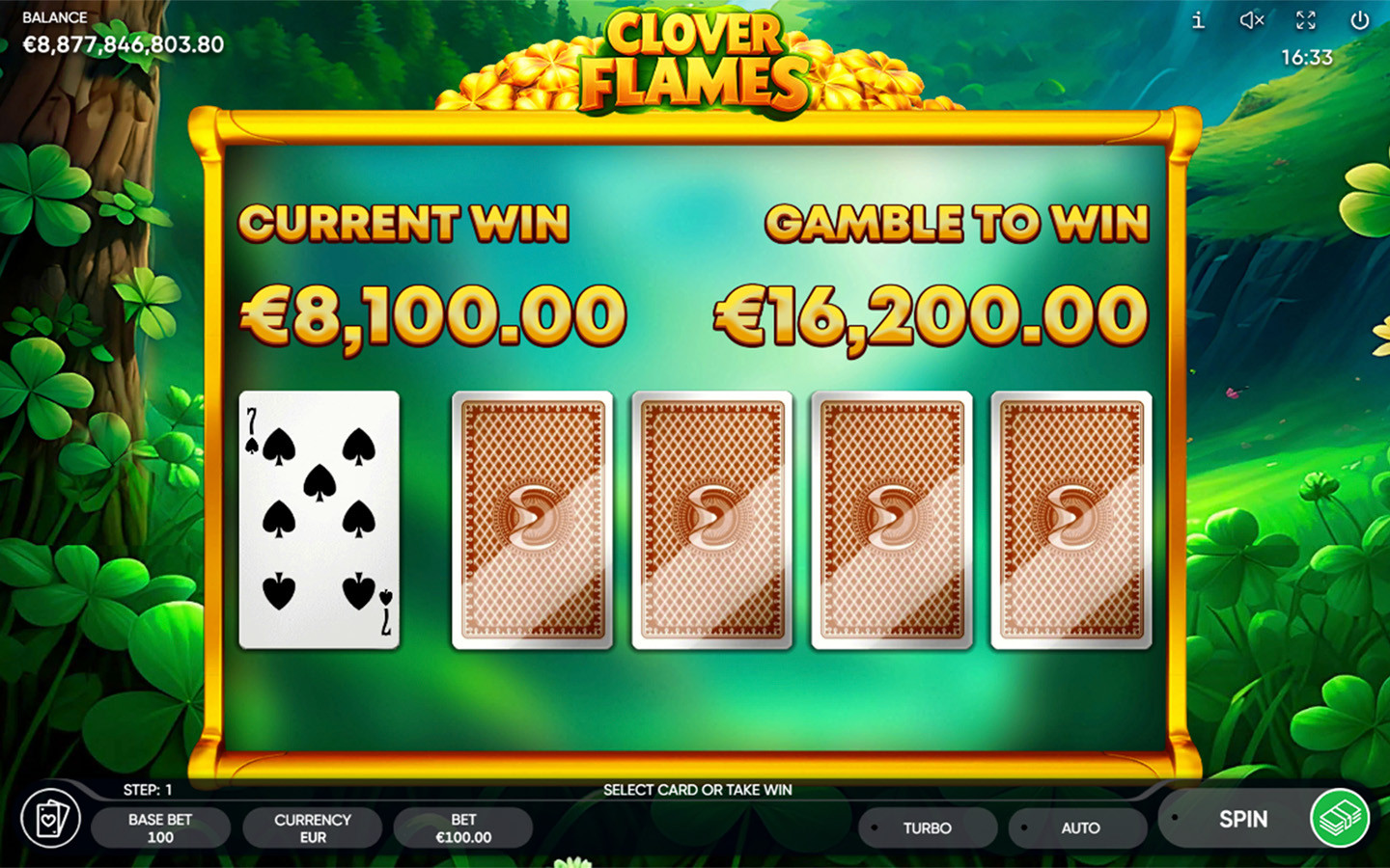 6 or more Golden Clover symbols trigger the Clover Time Bonus Game. During the Bonus Game, the main game reels turn into a 5x5 grid with a reel containing Golden Clover symbols and empty cells. Golden Clover symbols remain in place once they appear on the reels and may provide the players with a Jackpot up to 150x total bets. The Bonus Game starts with 3 attempts; each Golden Clover that appears on the reels reverts the number of attempts to its initial value. Player gets an extra prize – Ultra Jackpot (1000x total bets) when collecting 25 Golden Clover symbols during the Bonus Game.