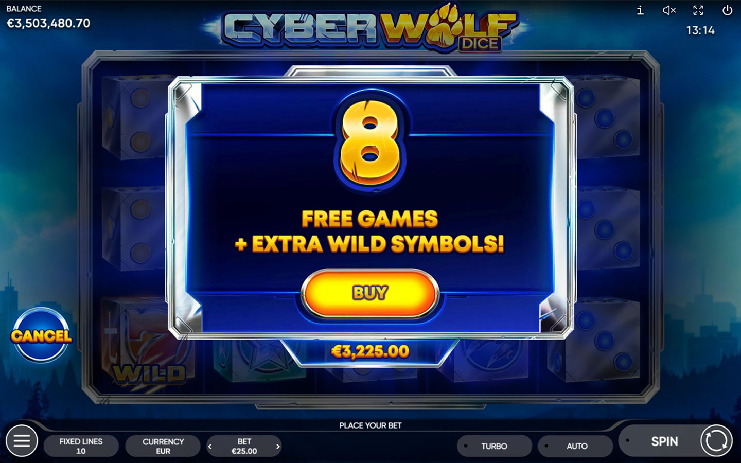 Endorphina’s Cyber Wolf is no ordinary wolf. Causing excitement amongst players since the first time he emerged on the reels, our Cyber Wolf now makes an appearance in yet another brilliant online slot - Cyber Wolf Dice!