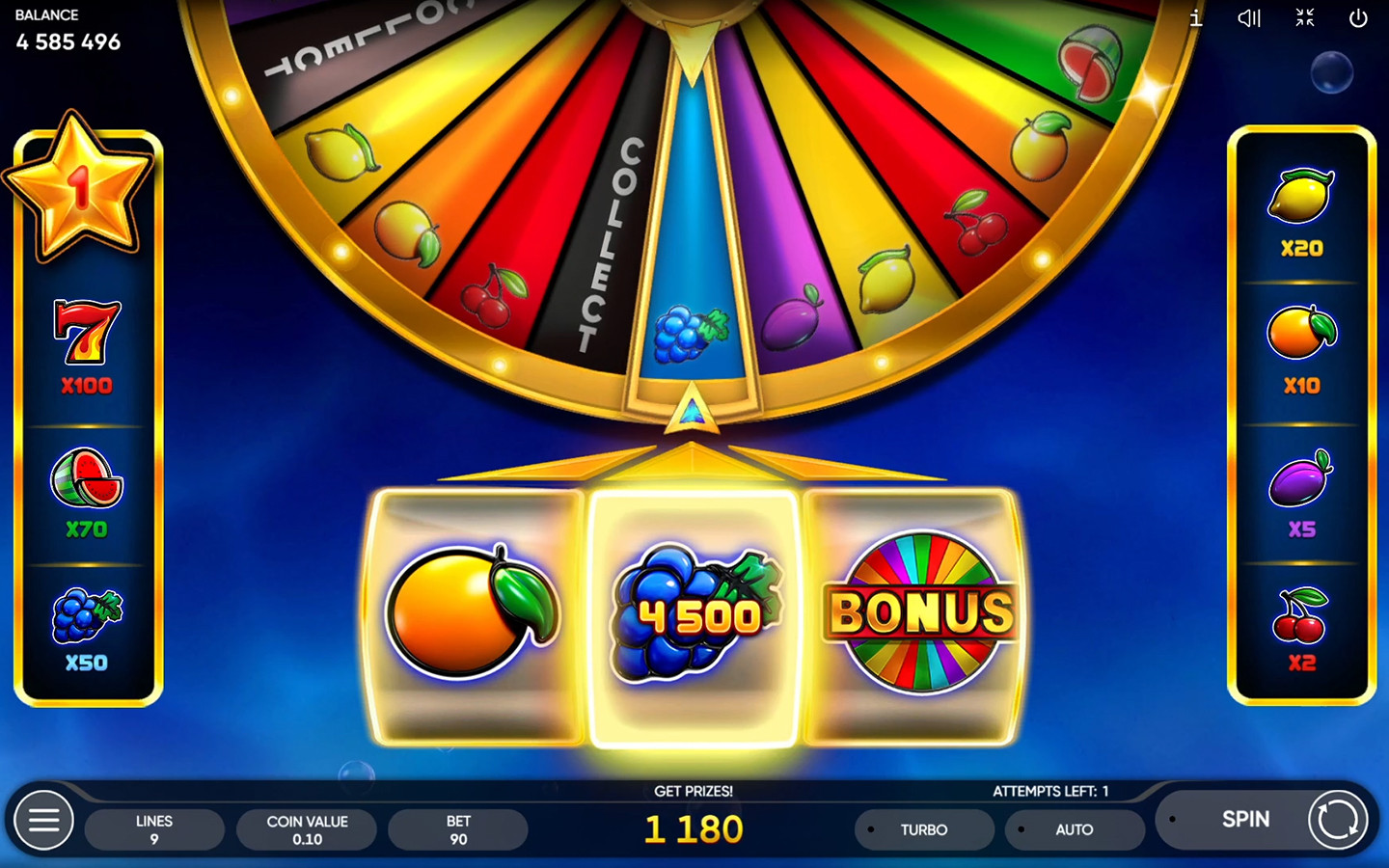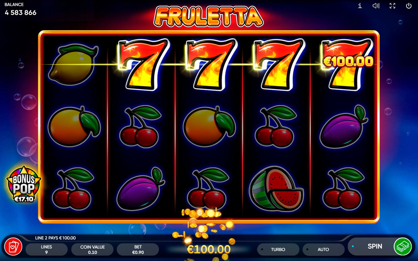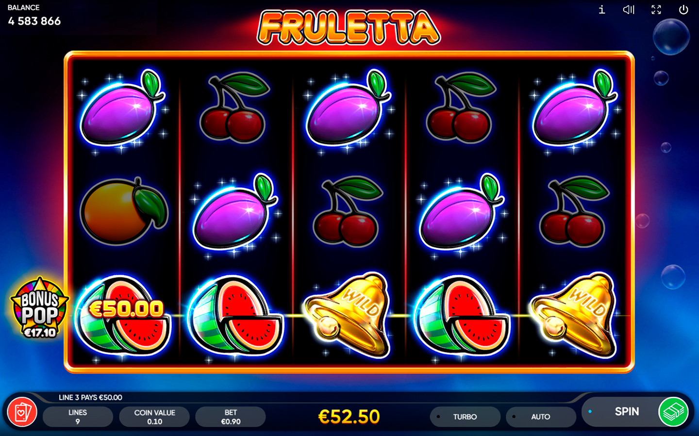 The Fruletta slot is brought in, framed in royal blue, with the wheel touched by all the colors of luck. Its alluring fruity design shimmers with a sunny gold, revealing a unique combination of cutting-edge math and exciting gaming challenges.