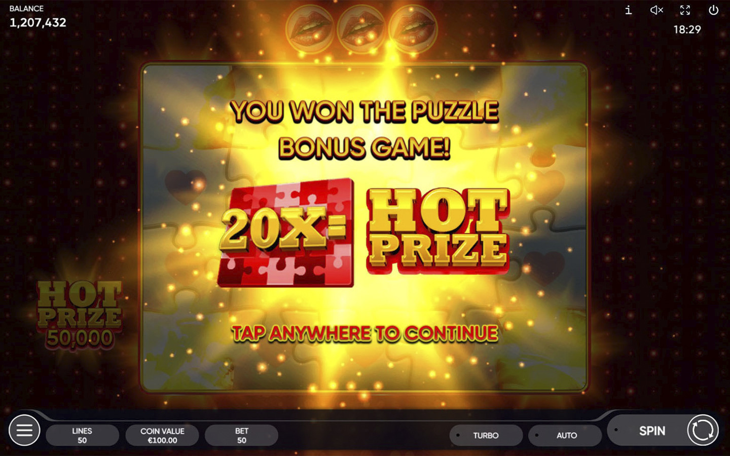 The Puzzle Bonus Game concludes either when attempts are exhausted or when the entire picture is unveiled. Discovering the full picture in Hot Puzzle unlocks the Hot Prize, an impressive 1000x the total bet!