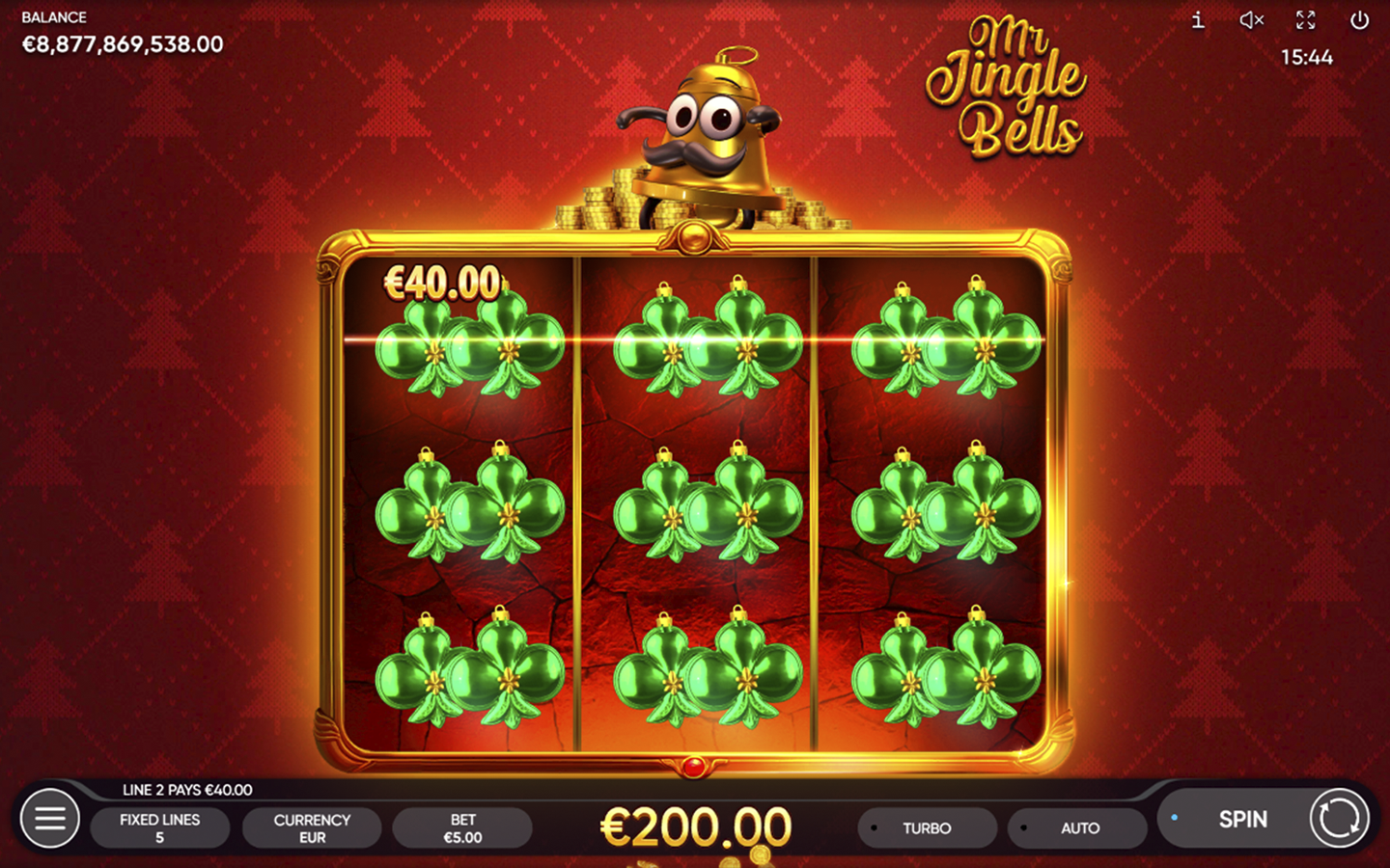 In our new 3-reel 3-row slot with 5 paylines, Mr. Jingle Bells boosts the winnings! When all the reels in the main game are covered with Christmas toys of a kind, the Jingle Bells Bonus Game is triggered.