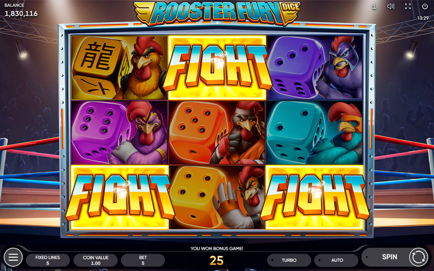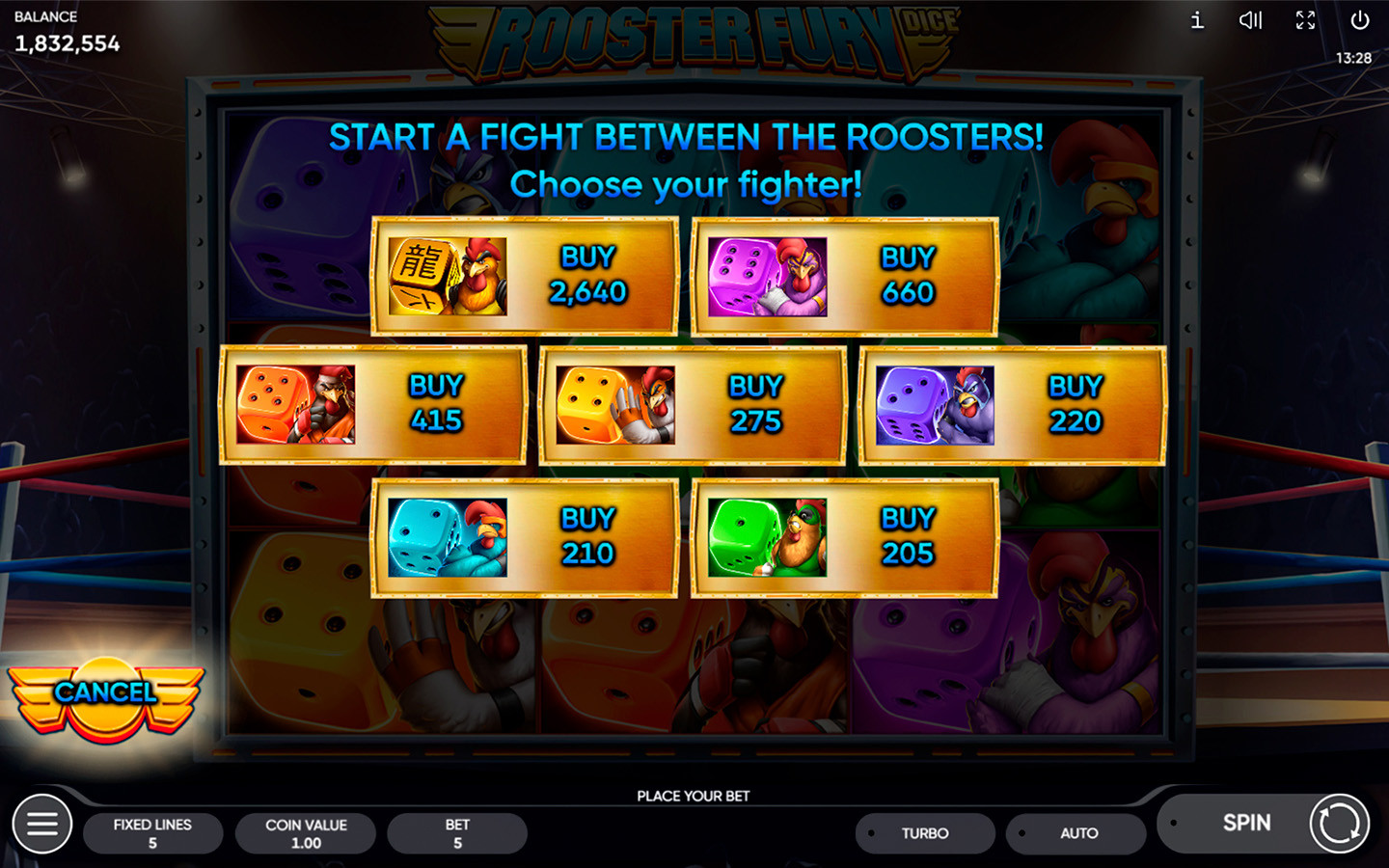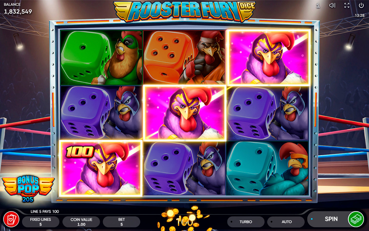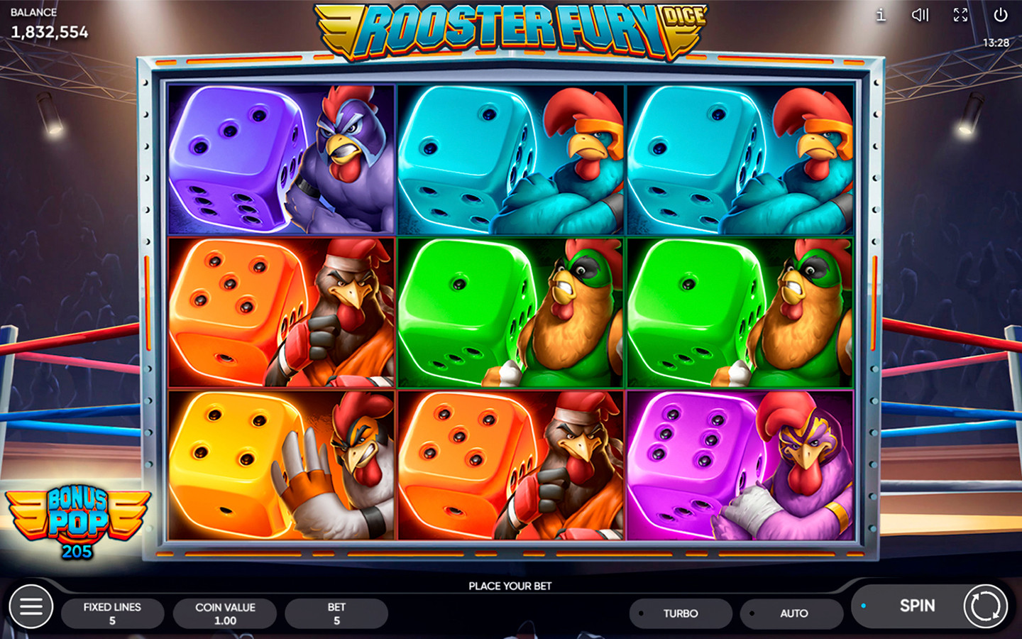 Get in the ring in our Rooster Fury Dice slot!