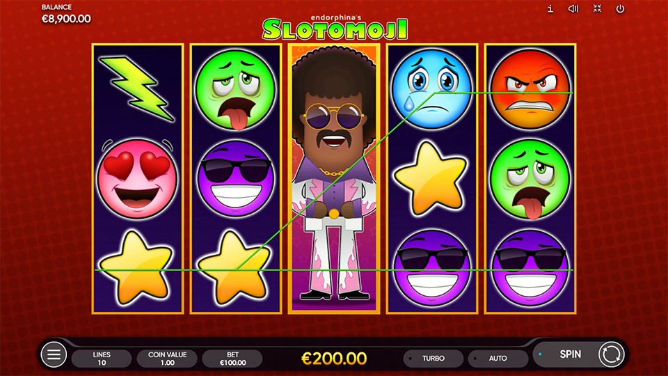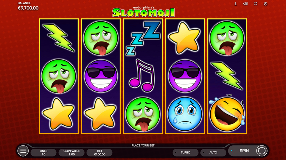 This incredible 5-reel, 3-row, 10-line casino game by Endorphina is called Slotomoji slot. It's inspired by those popular, miniature, and catchy pictures (emojis) that have become deeply engrained into the way we digitally communicate. Emojis are ideograms that have first originated on Japanese mobile phones in the late 1990s but have quickly adopted themselves into the language of modern smartphones. Endorphina´s Slotomoji brings emotions to life with striking colors and chances of winning big.