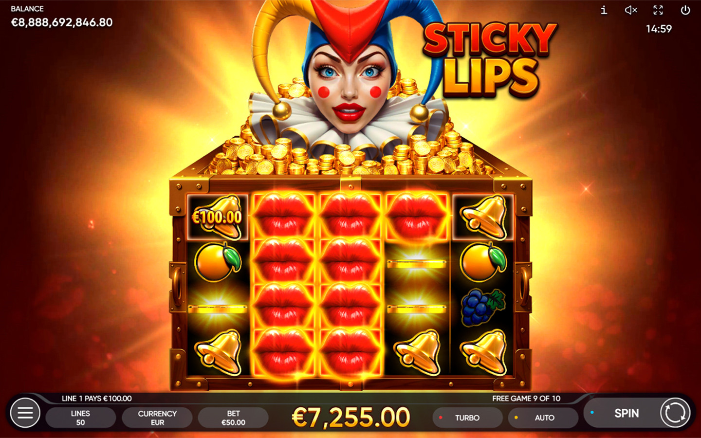 Our dazzling Joker is back, blowing irresistible kisses that could seal your fortune. Dare to stare into her eyes in this 5-reel 4-row slot with 50 fixed paylines and prove your worth to get a lucky, juicy kiss.