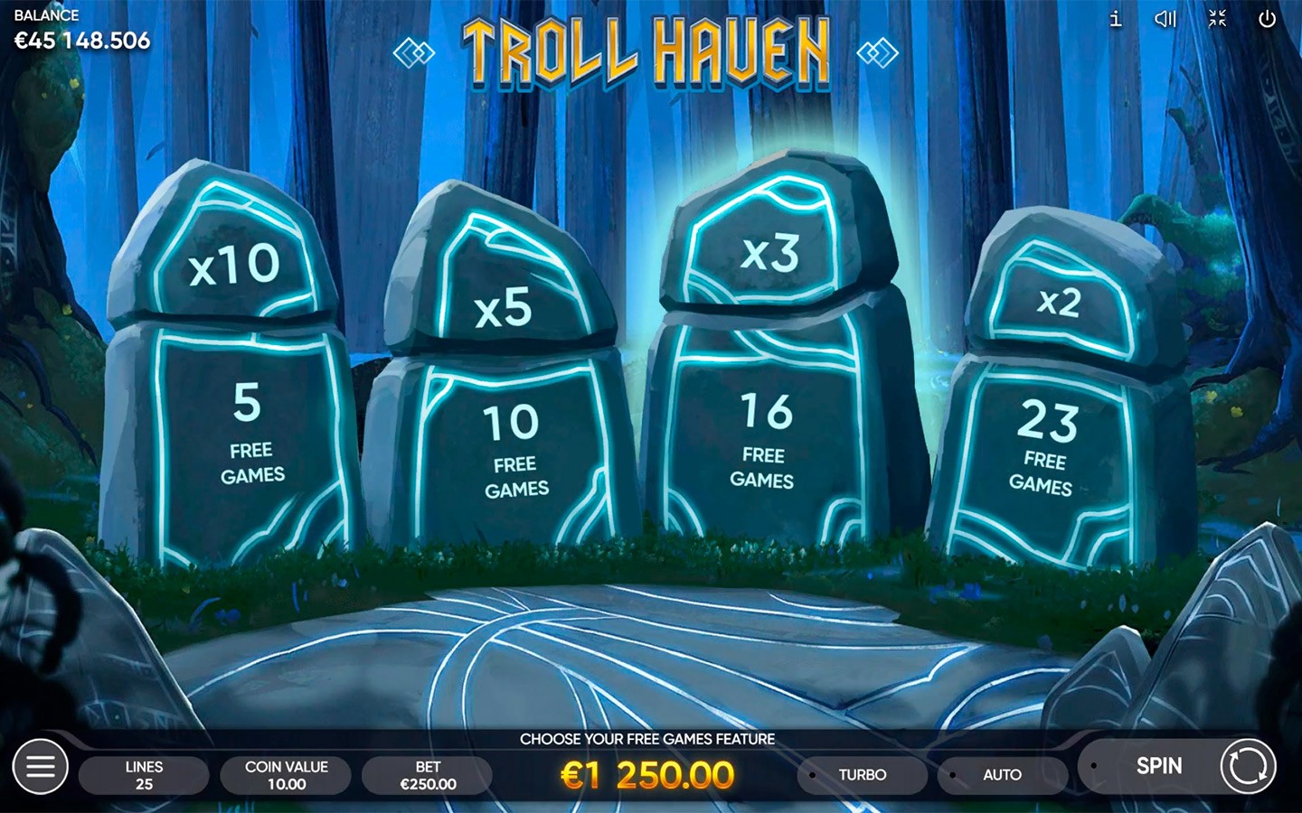 Troll Haven is an adventurous 5-reel, 3-row, and 25-payline slot with the authentic atmosphere of Scandinavian mythology. The symbols are appealing to Scandinavian mythology with these mystery runes, magic potions, Nordic flora and fauna, and of course, the main character – Troll. As a wild symbol, our Troll substitutes for all symbols except for the scatter.