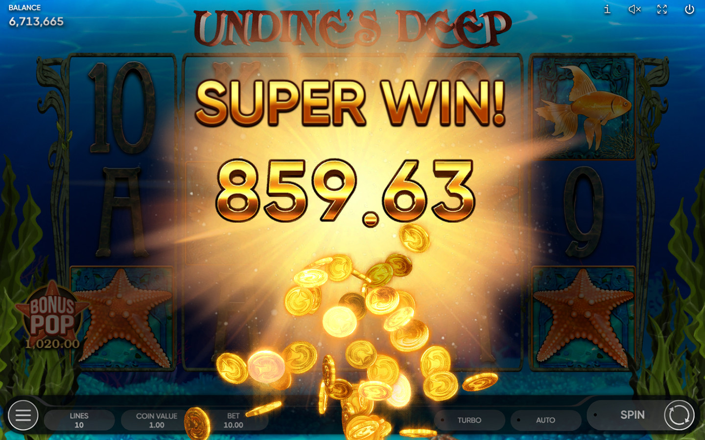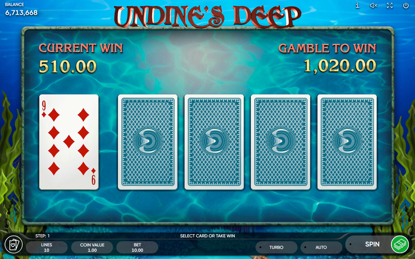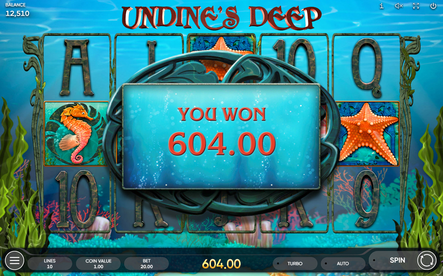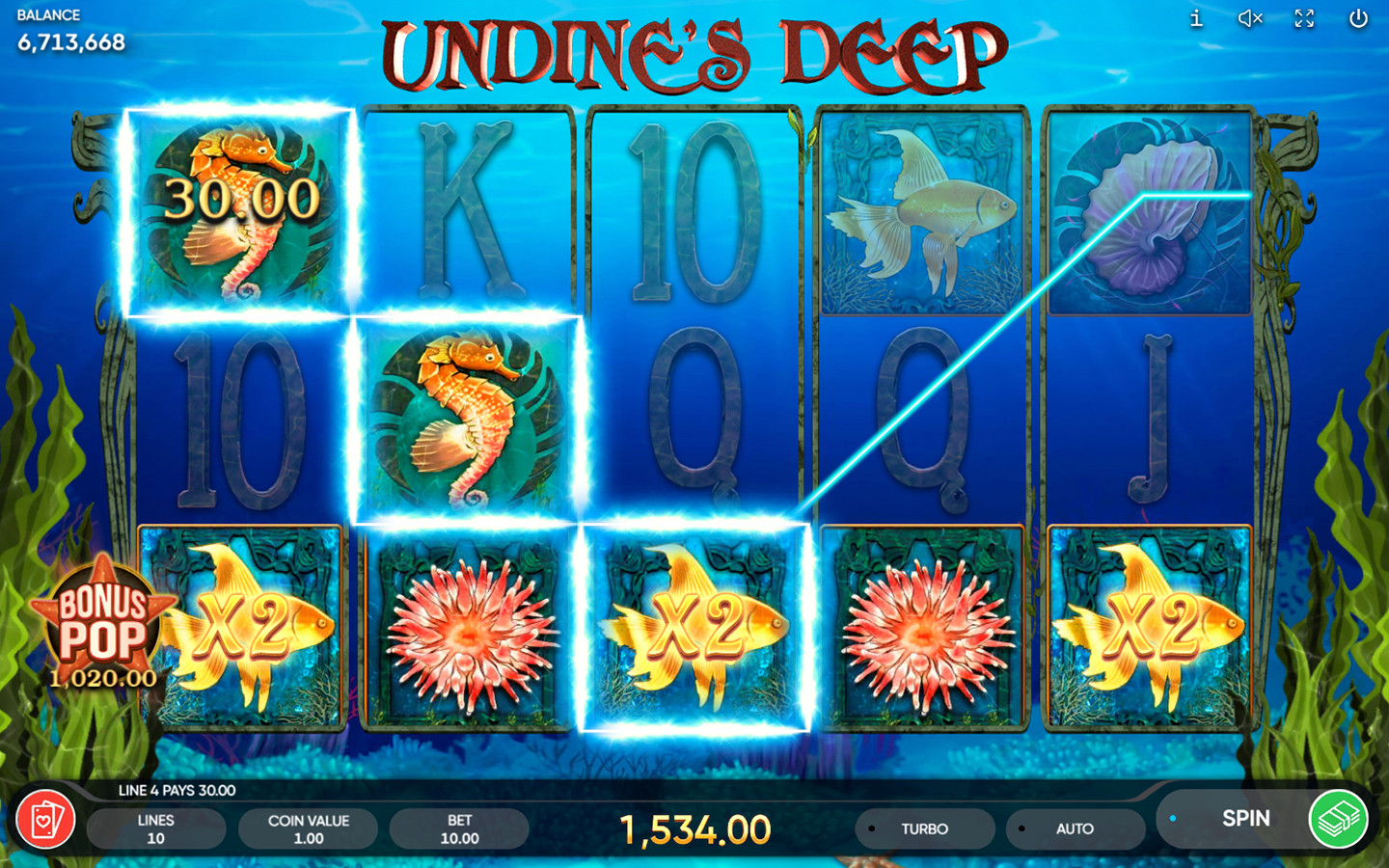 Undine's Deep game by Endorphina will take you to the deep ocean where charming mermaid Undine all together with other sea creatures dwell. The illusion of the ocean is just perfect, soothing music, slowly moving seagrass, seahorses, and crystal clear water tempting for a dive.